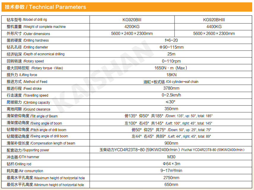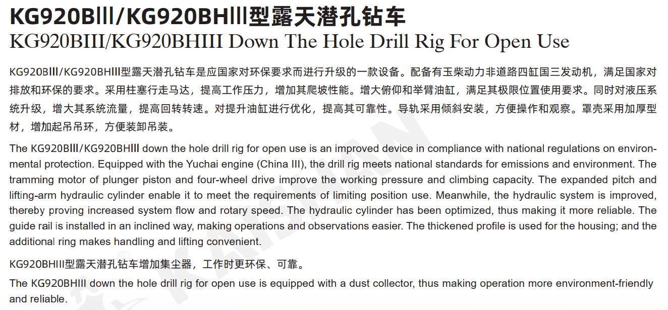 KG920BⅢ/KG920BHⅢ型露天潛孔鉆車